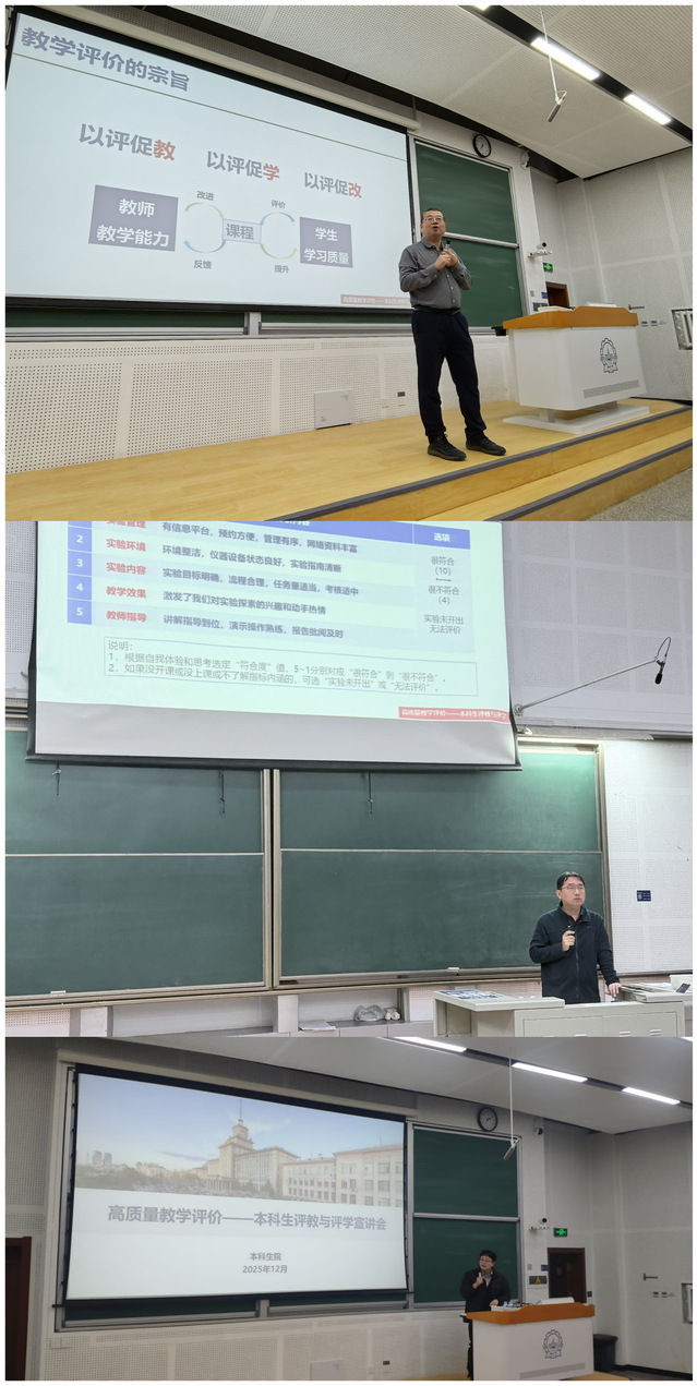 为引导大一新生充分认识评教与评学的重要意义,掌握评价流程与核心要求,保障2025年秋季学期本科生评教与评学工作有序开展,12月16日至18日,本科生院牵头,联合基础学部、未来技术学院面向全体大一新生,全覆盖开展了9场评教与评学宣讲会。