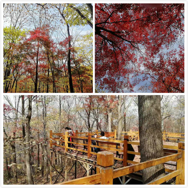 松峰山景区位于哈尔滨市东南65公里处,面积15.8平方公里。这里有良好的生态环境,优美的自然风光,厚重的道教文化,淳朴的乡村特色。山间人工修建的木制栈道连接于多个景点之间,与黄绿相间空中飞舞的树叶窗帘及稀疏相间的树叶地毯浑成一体,形成秋天山间独特的风景。迎着凉爽的秋风,身处满山葱葱盈盈的红、黄、绿之中,不由让人想起了唐朝刘禹锡的那句“自古逢秋悲寂寥,我言秋日胜春朝”。