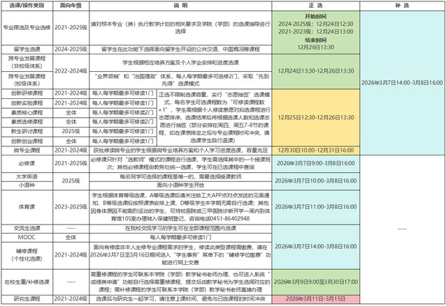 2026年春季学期课程选课即将开始,现将具体事宜通知如下: